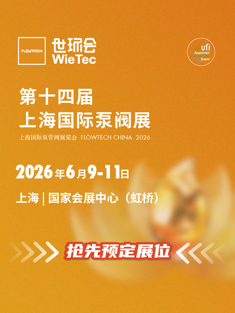 煥新升級!第十四屆上海國際泵閥展將于2026年6月9-11日在上海國家會展中心(虹橋)盛大啟幕,誠邀全球“泵閥人”共聚盛會。